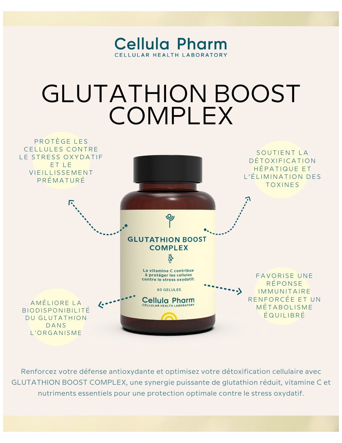 Boost your antioxidant defense and optimize cellular detoxification with GLUTATHION BOOST COMPLEX, a powerful synergy of reduced glutathione, vitamin C and essential nutrients for optimum protection against oxidative stress.