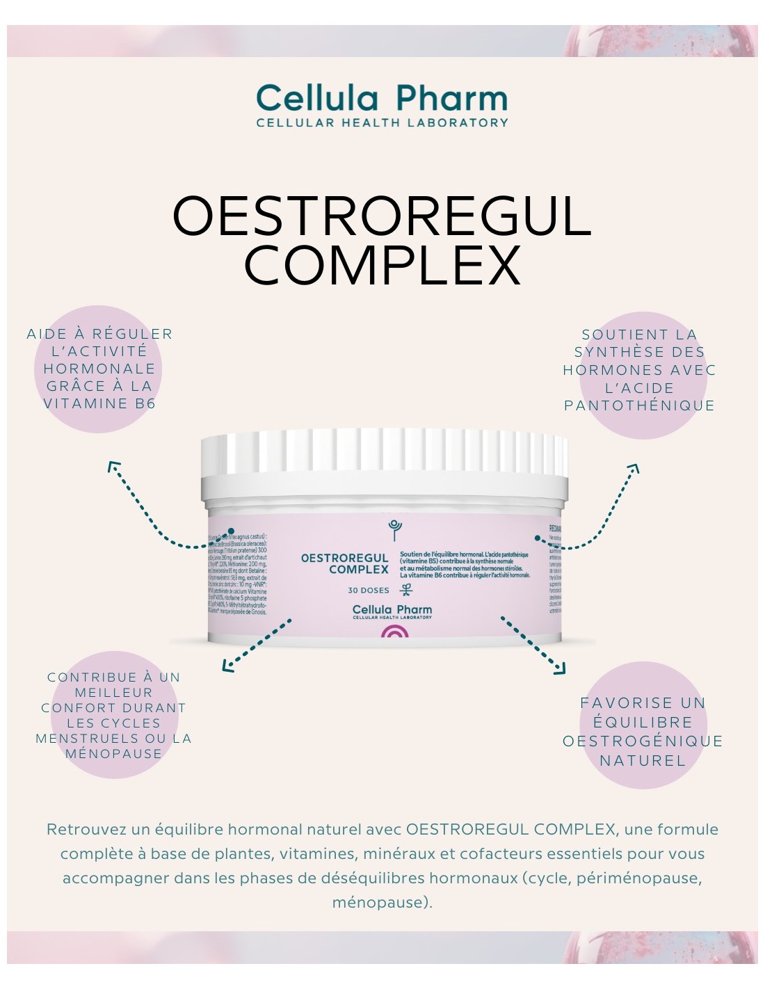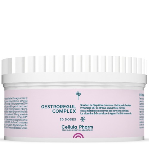 Find a natural hormonal balance with OESTROREGUL COMPLEX, a complete formula based on herbs, vitamins, minerals and essential cofactors to accompany you in the phases of hormonal imbalances (cycle, perimenopause, menopause).